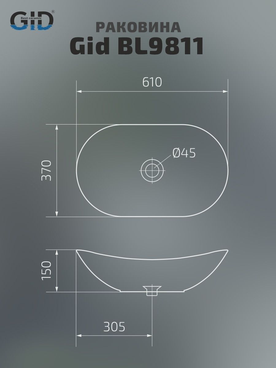Раковина Gid BL9811 53349 накладная черная глянцевая 61x37x15 купить