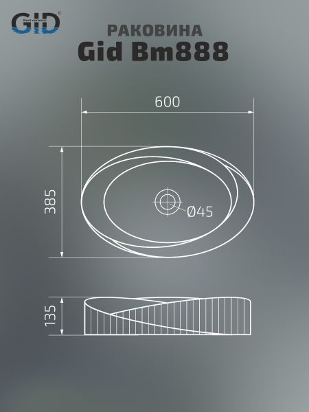 Раковина Gid Bm888 53358 накладная черная матовая 60x38.5x13.5 купить