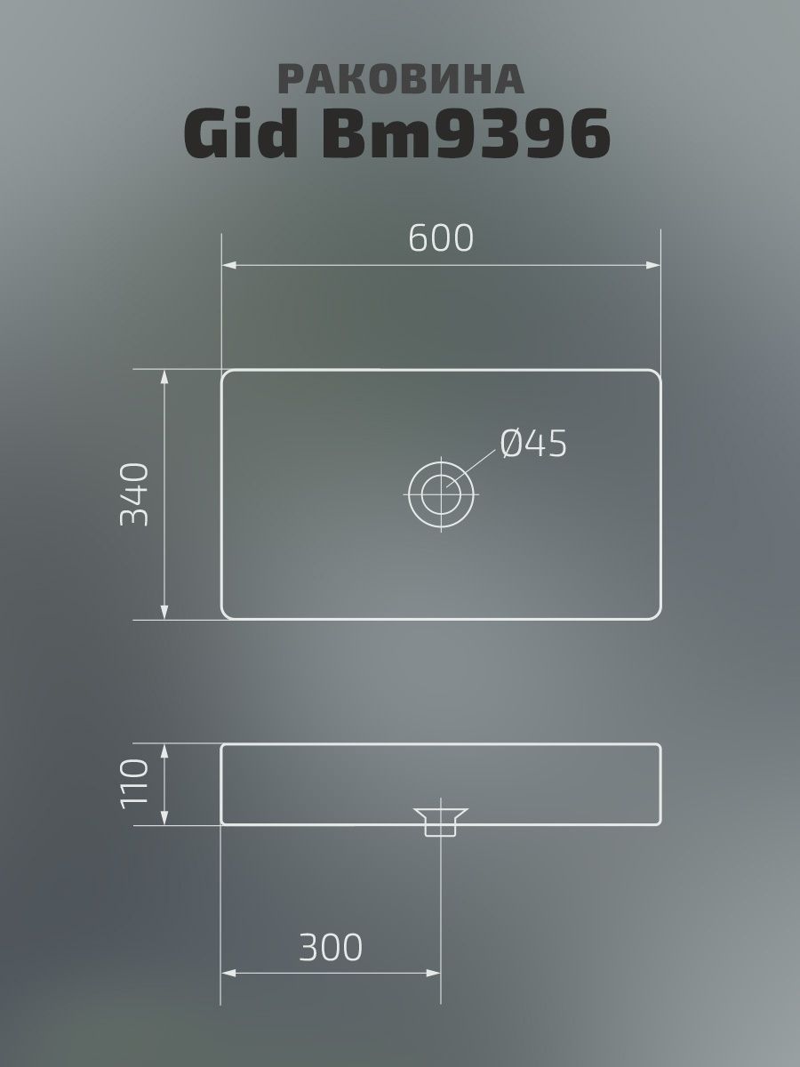 Раковина Gid Bm9396 53344 накладная черная матовая 60x34x11 купить