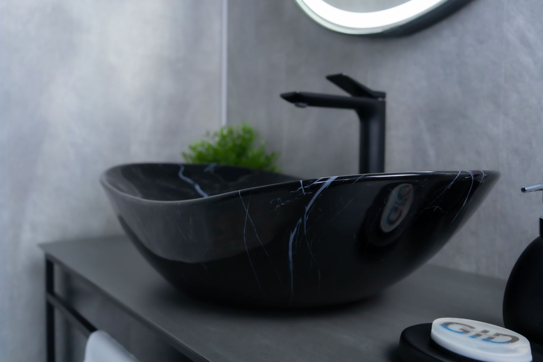 Серия Lago овальной формы — это испанское качество, соответствующее современным европейским требованиям. Раковина накладная GiD Bs9811 — стильная и современная модель, изготовленная из высококачественной керамики с глянцевой поверхностью в черном цвете, создающим эффект натурального камня. Её овальная форма и минималистичный дизайн идеально подходят для ванных комнат в любом стиле, от классического до современного. Модель предназначена для накладной установки на столешницу, что позволяет подчеркнуть изысканность интерьера. Отсутствие отверстия под смеситель позволяет выбрать любую модель настенного или встроенного смесителя.