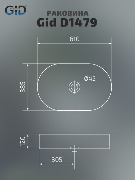 Раковина Gid D1479 51203 накладная белая 61x38.5x12 купить