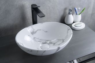 Серия Lago овальной формы — это испанское качество, соответствующее современным европейским требованиям. Раковина накладная GiD Mnc138C — это стильная модель, изготовленная из высококачественной керамики. Она имеет овальную форму, что делает её практичным решением для современных ванных комнат. Дизайн раковины имитирует глянцевую поверхность натурального камня, придавая интерьеру элегантность и утончённость. Раковина устанавливается накладным способом на столешницу, что подчёркивает её современный стиль. Благодаря отсутствию отверстия под смеситель раковина позволяет реализовать различные дизайнерские решения по размещению смесителя. Раковина предназначена для бытового использования и гармонично впишется в любой интерьер ванной комнаты.