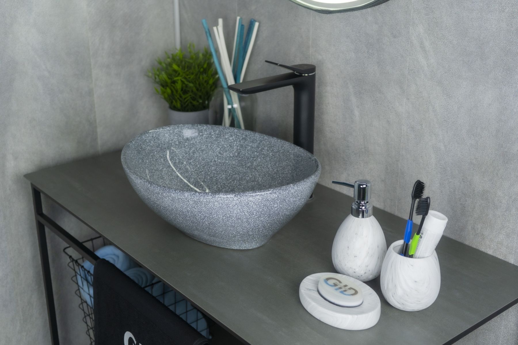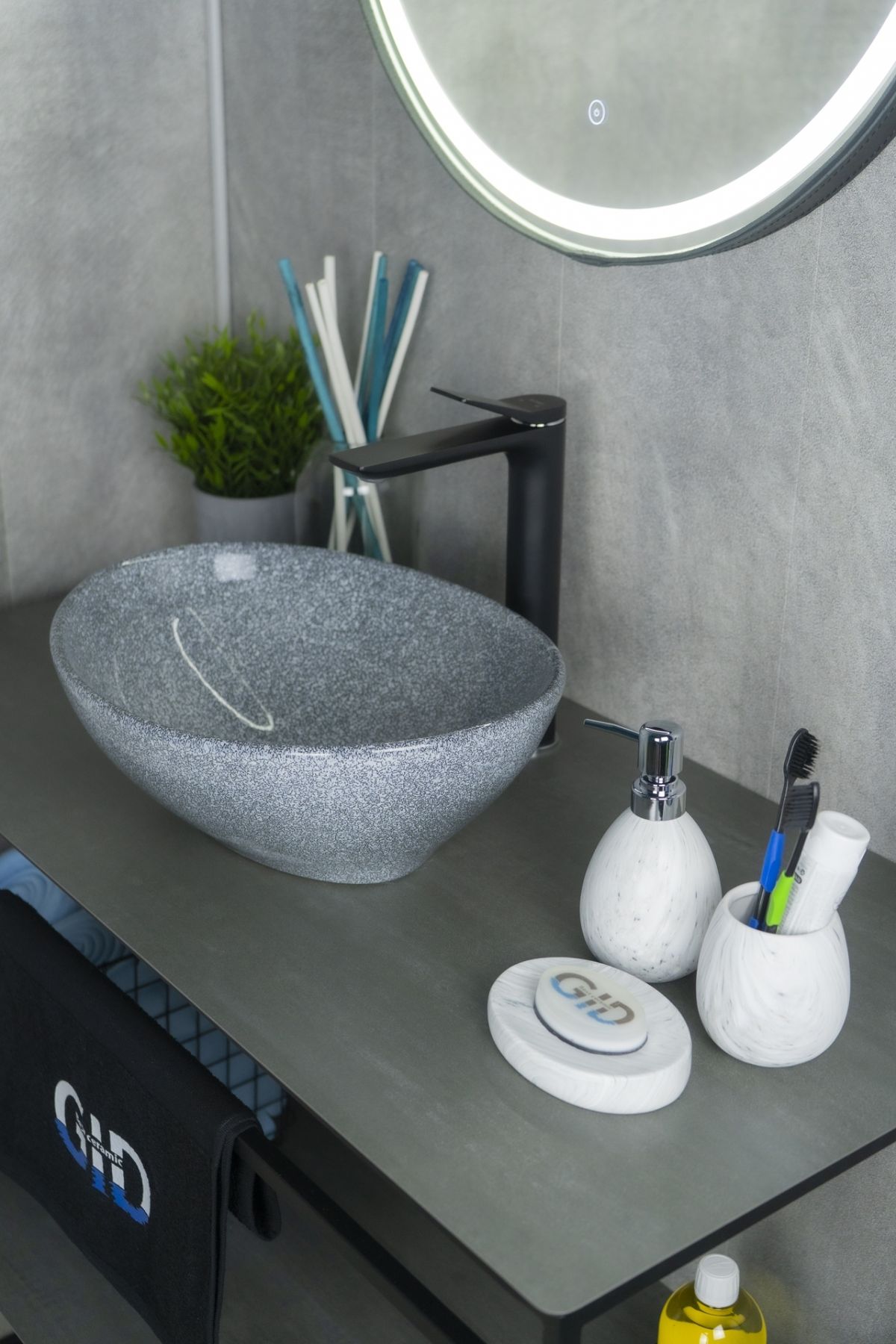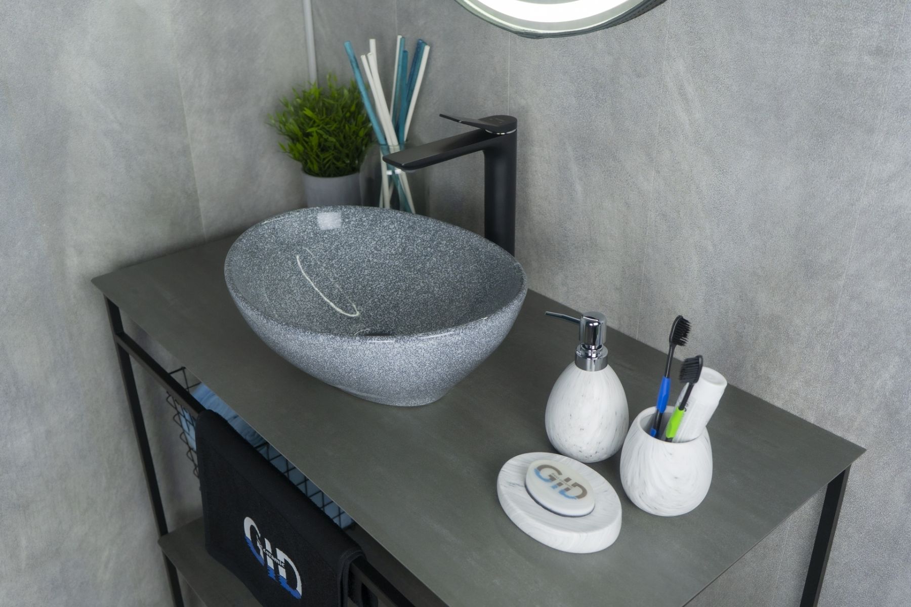 Серия Lago овальной формы — это испанское качество, соответствующее современным европейским требованиям. Раковина GiD Mnc331 — это стильная накладная модель, изготовленная из высококачественной керамики. Она имеет овальную форму, что делает её практичным решением для современных ванных комнат. Дизайн раковины имитирует глянцевую поверхность натурального камня, придавая интерьеру элегантность и утончённость. Раковина устанавливается накладным способом на столешницу, что подчёркивает её современный стиль. Благодаря отсутствию отверстия под смеситель раковина позволяет реализовать различные дизайнерские решения по размещению смесителя. Раковина предназначена для бытового использования и гармонично впишется в любой интерьер ванной комнаты.