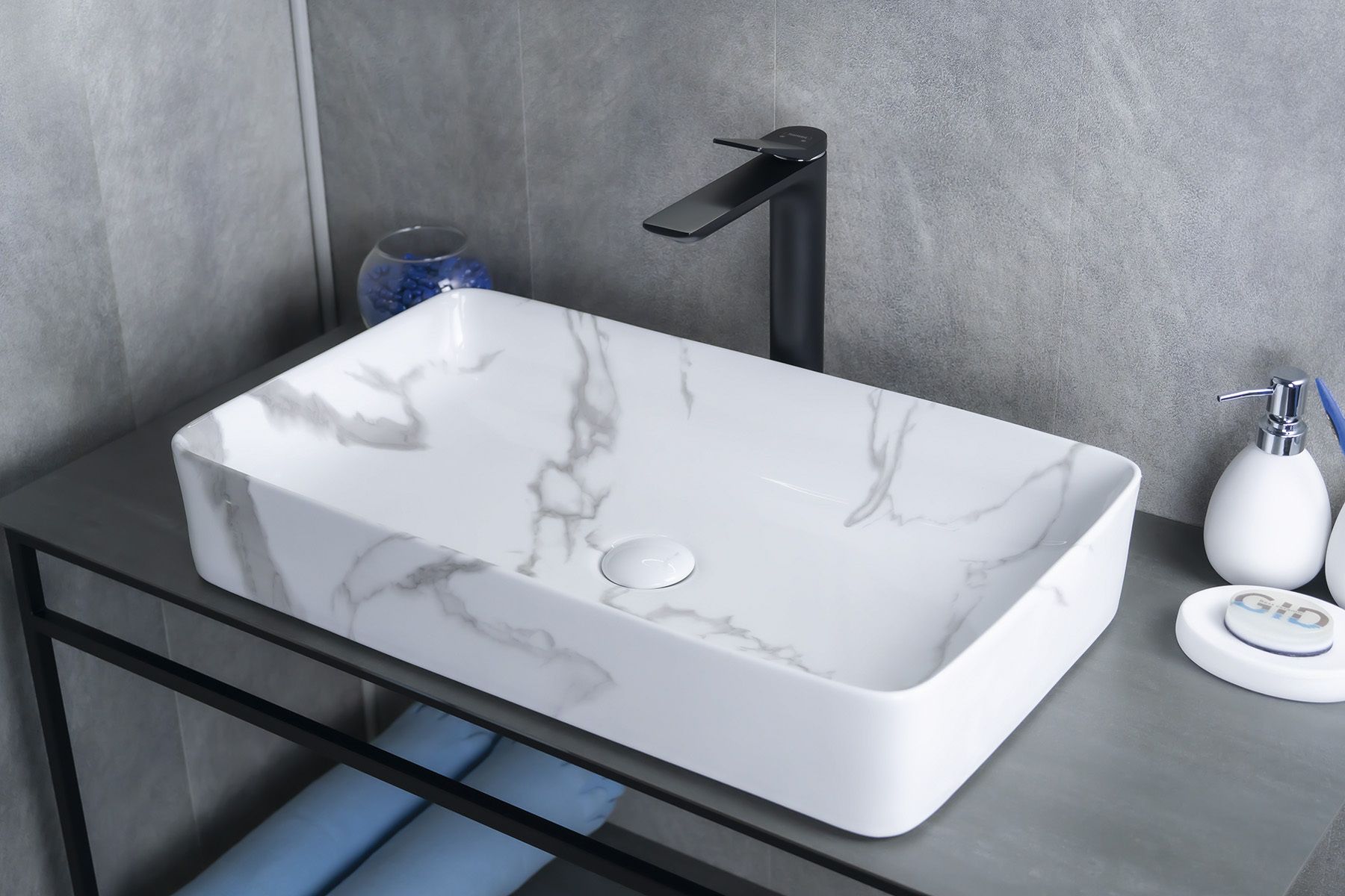 Серия Geometrico с прямоугольной формой: стиль и практичность с испанским качеством и европейскими стандартами. Раковина накладная GiD Mnc396C— элегантная модель прямоугольной формы, изготовленная из высококачественной керамики с глянцевой поверхностью в белом цвете, создающим эффект натурального камня. Её строгий и современный дизайн идеально подойдёт для ванных комнат в минималистичном или современном стиле. Благодаря отсутствию отверстия под смеситель раковина позволяет реализовать различные дизайнерские решения по размещению смесителя. Раковина предназначена для установки на столешницу, подчёркивая стильный и функциональный интерьер ванной комнаты.