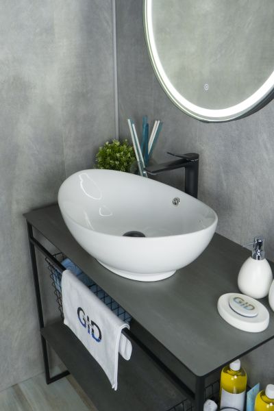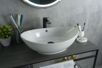 Серия Lago овальной формы — это испанское качество, соответствующее современным европейским требованиям. Накладная раковина GiD N9019 — сочетание элегантного дизайна и практичности для вашей ванной комнаты. Изготовлена из мелкопористой керамики с белым глянцевым покрытием, она придаст интерьеру свежесть и утонченность. Овальная форма обеспечивает оптимальное пространство для комфортного использования. Отсутствие отверстия под смеситель подчеркивает минималистичный стиль, а накладной способ монтажа на столешницу облегчает установку и позволяет создать современный облик ванной комнаты.