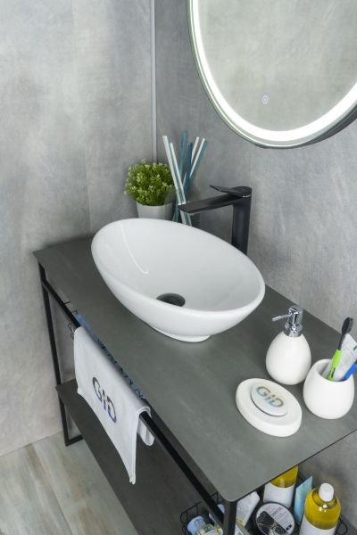 Серия Lago овальной формы — это испанское качество, соответствующее современным европейским требованиям. Накладная раковина GiD N9021 — сочетание элегантного дизайна и практичности для вашей ванной комнаты. Изготовлена из мелкопористой керамики с белым глянцевым покрытием, она придаст интерьеру свежесть и утонченность. Овальная форма обеспечивает оптимальное пространство для комфортного использования. Отсутствие отверстия под смеситель подчеркивает минималистичный стиль, а накладной способ монтажа на столешницу облегчает установку и позволяет создать современный облик ванной комнаты.