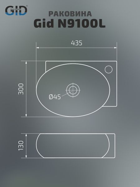 Раковина Gid N9100L 61103L подвесная белая 43.5x30x13 купить