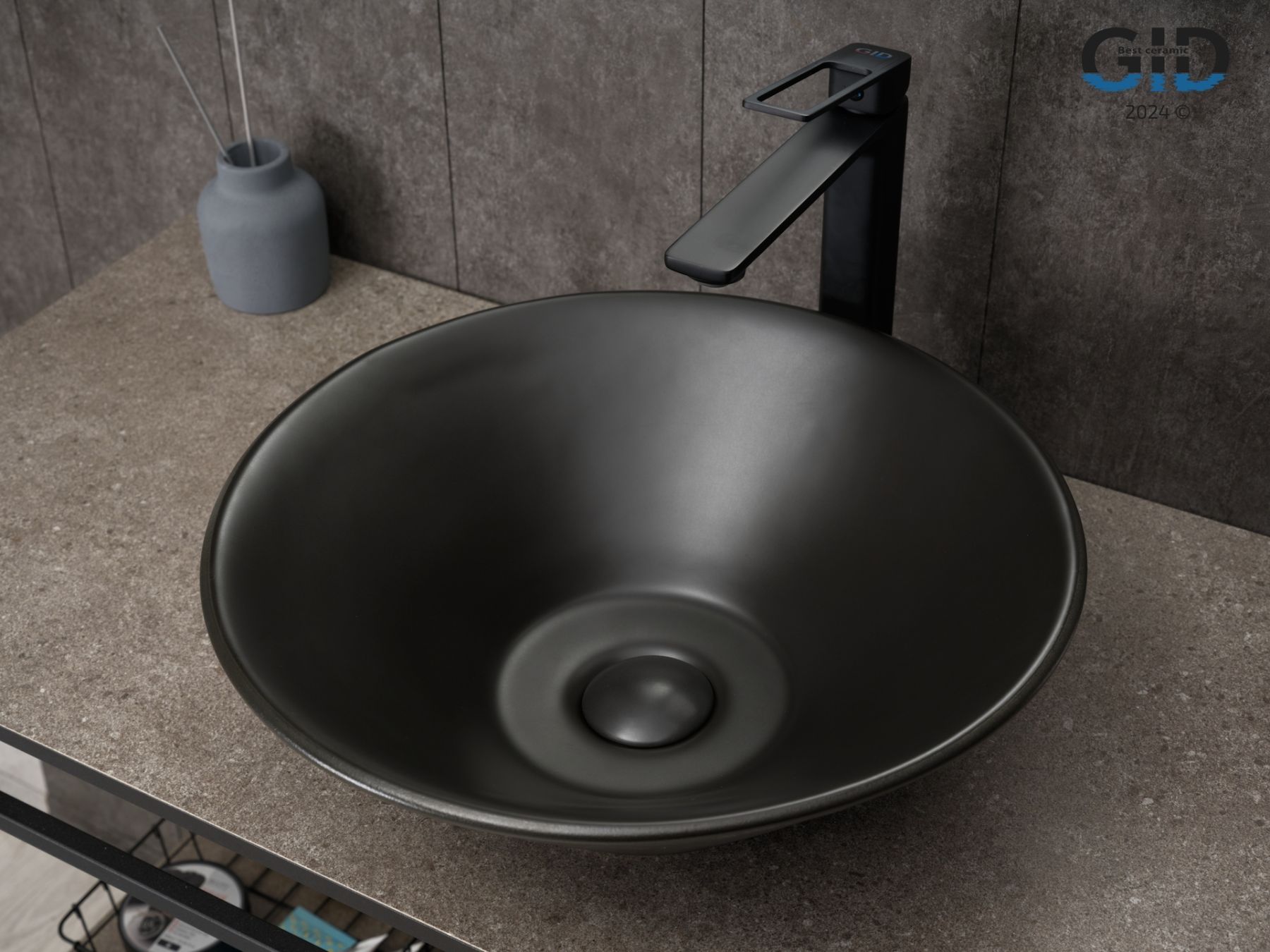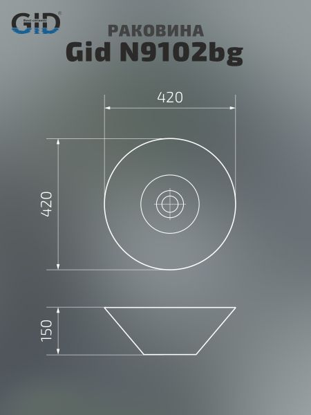 Раковина Gid N9102bg 53383 накладная черная графит 42x42x15 купить