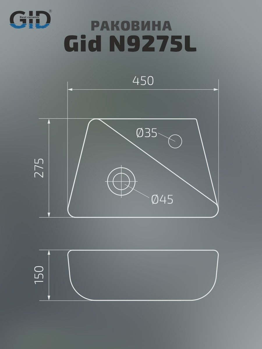 Раковина Gid N9275L 61107L подвесная белая 45x27.5x15 купить