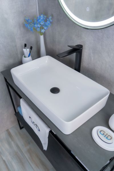 Серия Geometrico с прямоугольной формой: стиль и практичность с испанским качеством и европейскими стандартами. Накладная раковина GiD N9396 — сочетание элегантного дизайна и практичности для вашей ванной комнаты. Изготовлена из мелкопористой керамики с белым глянцевым покрытием, она придаст интерьеру свежесть и утонченность. Прямоугольная форма обеспечивает оптимальное пространство для комфортного использования. Отсутствие отверстия под смеситель подчеркивает минималистичный стиль, а накладной способ монтажа на столешницу облегчает установку и позволяет создать современный облик ванной комнаты.