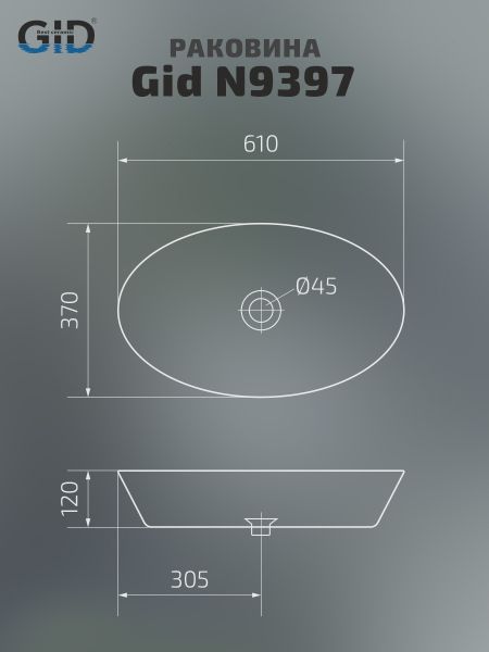 Раковина Gid N9397 51141 накладная белая 61x37x12 купить