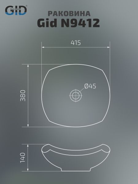 Раковина Gid N9412 51191 накладная белая 41.5x38x14 купить