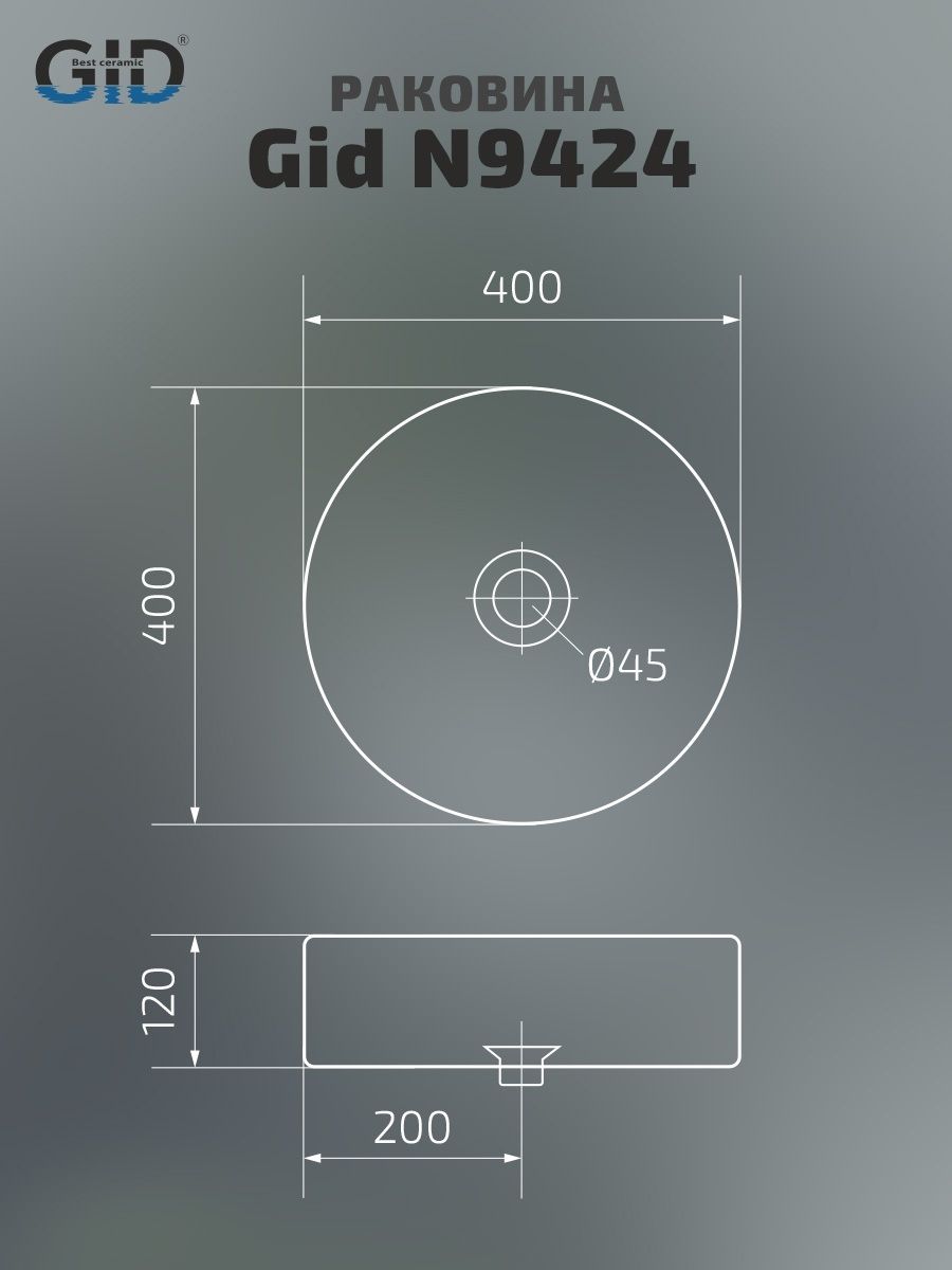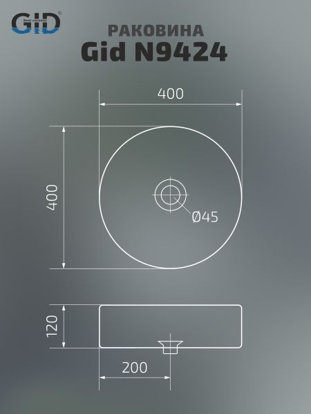 Раковина Gid N9424 51179 накладная белая 40x40x12 купить