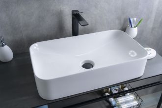 Серия Geometrico с прямоугольной формой: стиль и практичность с испанским качеством и европейскими стандартами. Накладная раковина GiD N9596 — сочетание элегантного дизайна и практичности для вашей ванной комнаты. Изготовлена из мелкопористой керамики с белым глянцевым покрытием, она придаст интерьеру свежесть и утонченность. Прямоугольная форма обеспечивает оптимальное пространство для комфортного использования. Отсутствие отверстия под смеситель подчеркивает минималистичный стиль, а накладной способ монтажа на столешницу облегчает установку и позволяет создать современный облик ванной комнаты.