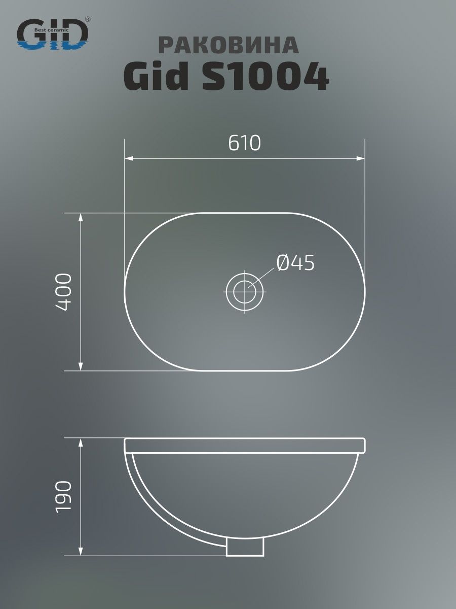 Integrado —встраиваемые раковины, которые объединяют в себе испанский стиль и международное признание качества. Встраиваемая сверху раковина GiD S1004 стильная и современная модель из высококачественной керамики с белым глянцевым покрытием, которое сохраняет блеск и легко чистится. Ее овальная форма с оптимальными размерами позволяет удобно интегрировать раковину в любую ванную комнату, создавая элегантную атмосферу. Отсутствие отверстия под смеситель подчеркивает минималистичный стиль, а накладной способ монтажа на столешницу облегчает установку и позволяет создать современный облик ванной комнаты. Модель идеально сочетается с любым интерьером ванной комнаты.
