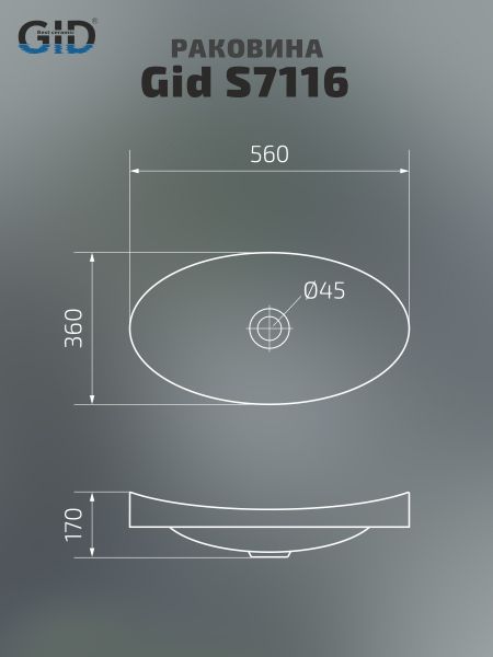 Раковина Gid S7116 71162 встраиваемая сверху белая 56x36x17