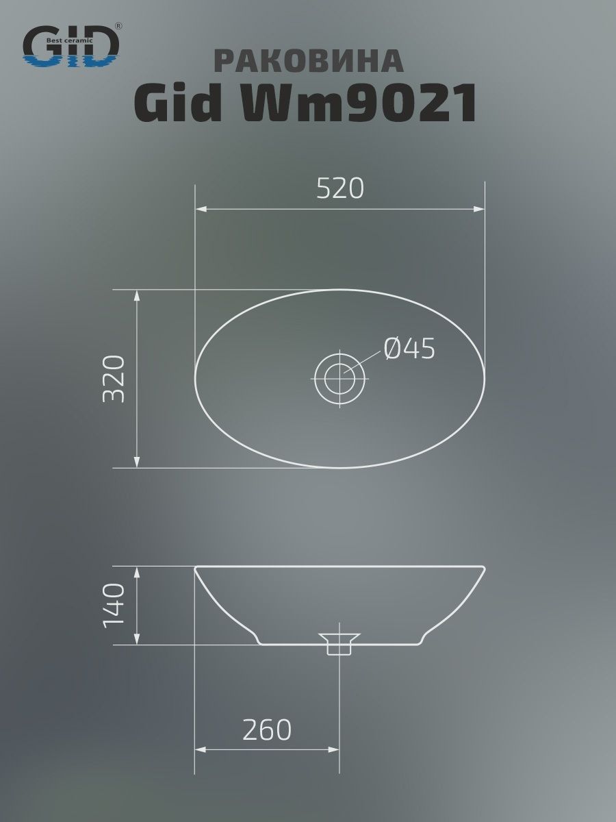 Раковина Gid Wm9021 51193 накладная белый матовый 52x32x14 купить