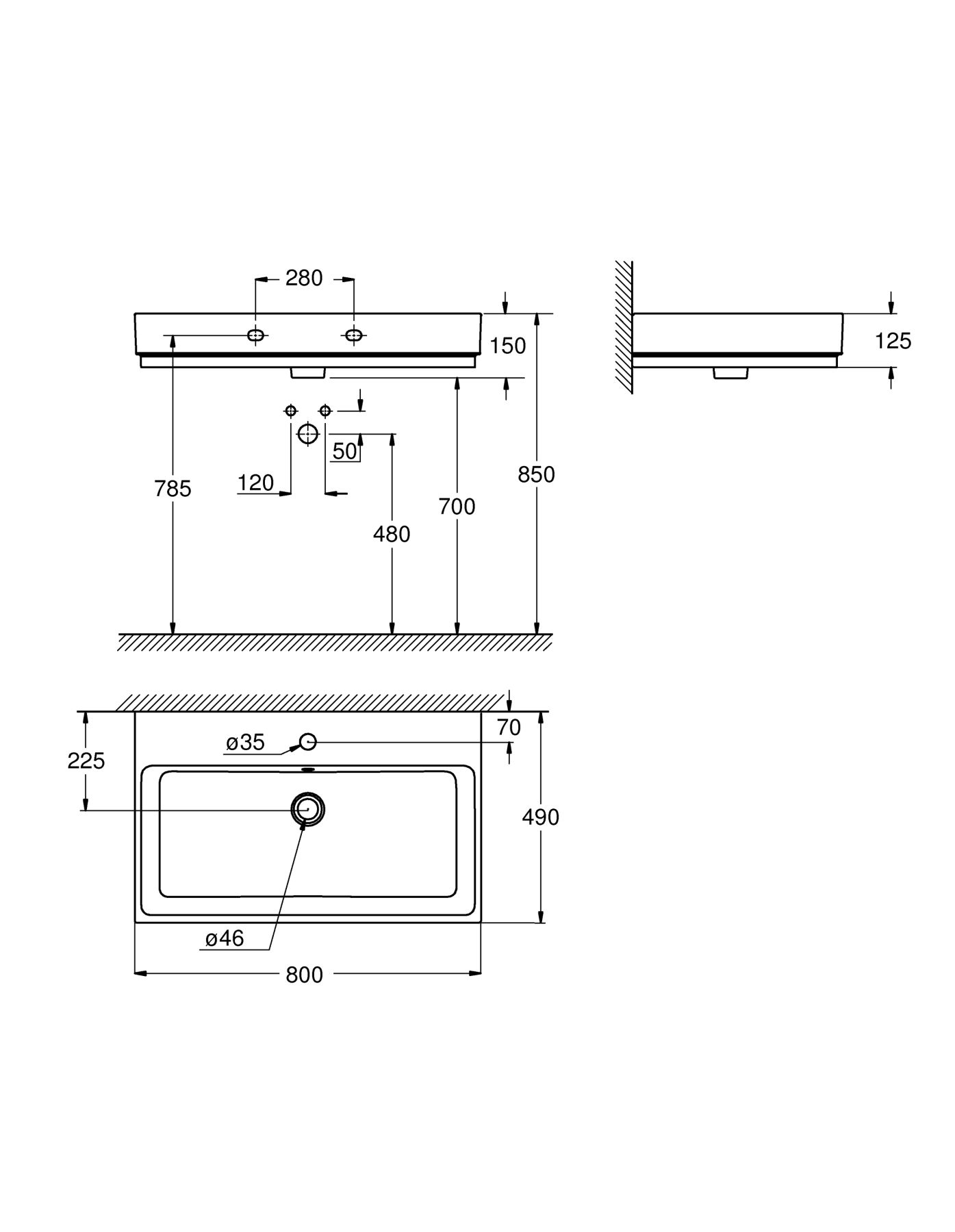 Раковина Grohe Cube Ceramic 3946900H 80 см1 отверстие под смеситель, 2 намеченных отверстия.