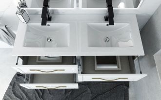 Раковина из искусственного мрамора с двумя чашами120x46x2,5смБелая