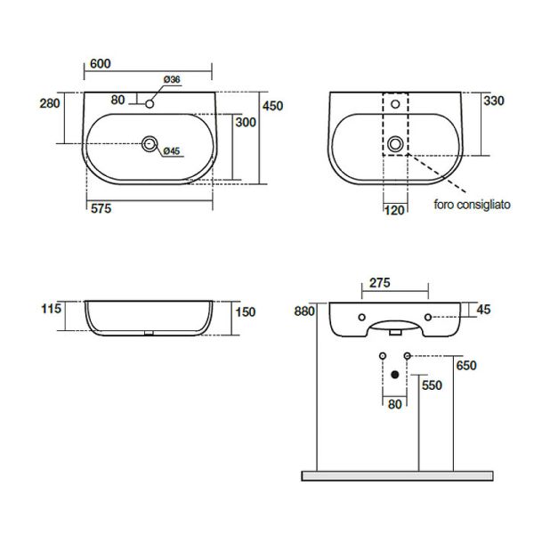 Глубина раковины: 115 мм.