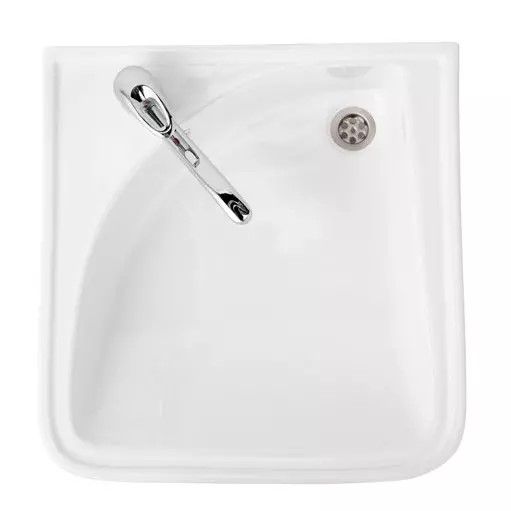 Раковина кувшинка Компакт отечественного производства выгодно отличается от импортных аналогов вертикальной системой стока воды. Такая конструкция сводит к минимуму вероятность образования засоров, обеспечивает быстрый сток воды из раковины. Слив проходит не над машинкой, а за ней, поэтому даже в случае протечки вода не попадет на технику и не вызовет короткое замыкание.
