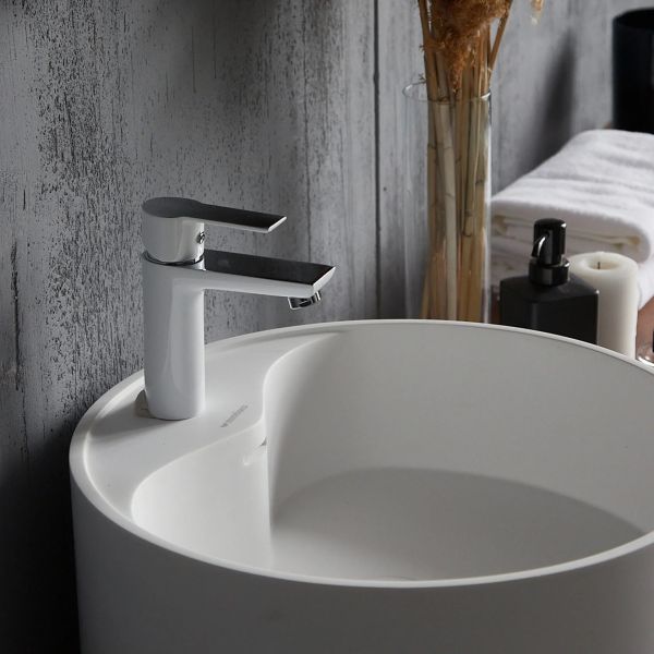 Смеситель устанавливается на поверхность раковины – удобно, если нет желания тратить время на нестандартные решения. Гармонично смотрится как смеситель белого цвета, так и хромированный, матовый и даже черный, если дополнить композицию аксессуарами того же цвета.