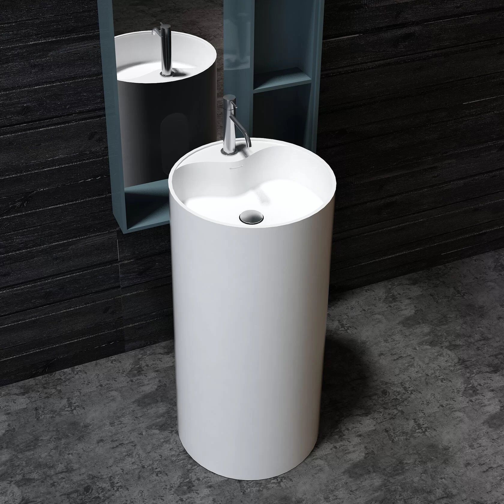 Модель напольного размещения. Не требует сложных манипуляций при инсталляции, устанавливается обособленно от предметов мебели. Благодаря большой видимой площади белоснежно-матовой, бархатистой поверхности великолепно выглядит в интерьере, является самостоятельной композицией. Часто устанавливается в сан.узлах ресторанов и баров, а также частных домах и квартирах с ванными комнатами большой площади.