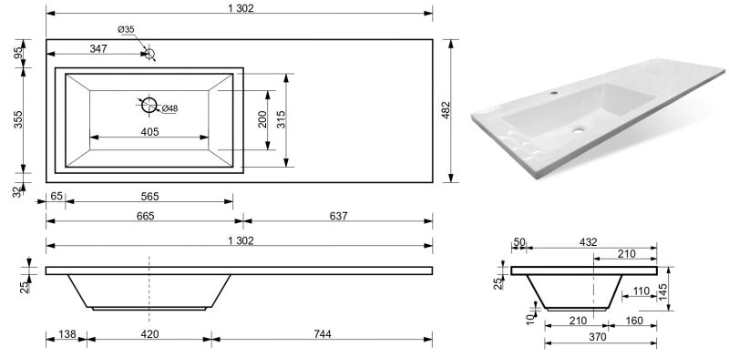 • Отверстия под смеситель: