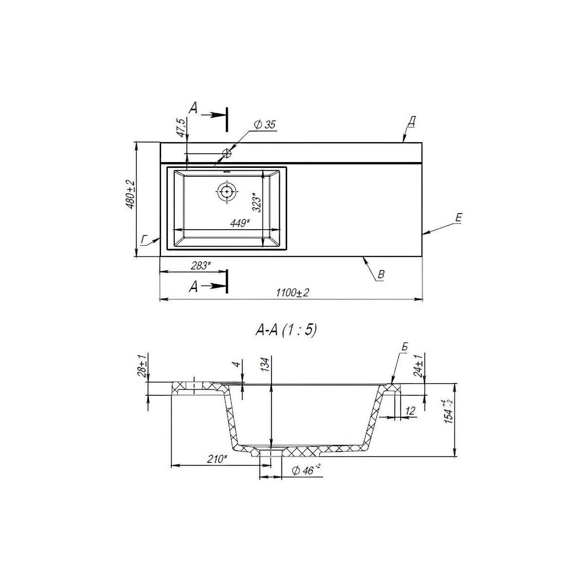 Раковина над стиральной машиной Maretti UM13SM36-844, белая. Материал: литьевой мрамор. Размер: 110x48x15,4. Форма: прямоугольная. Крыло справа.