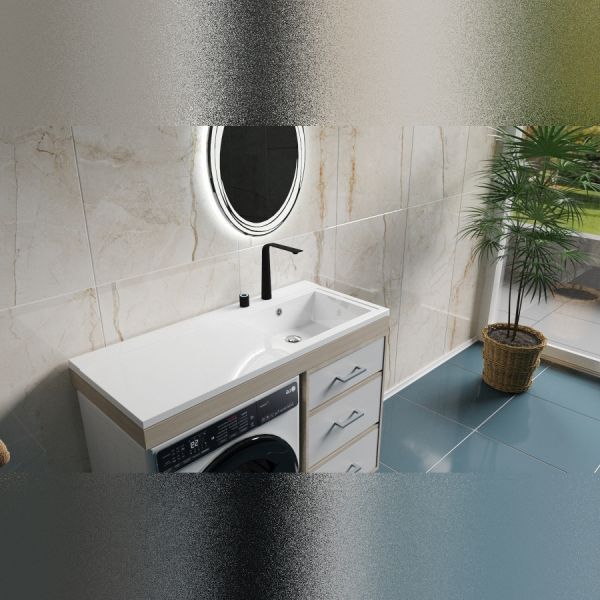 Раковина над стиральной машиной Maretti UM13SM44-844, белая. Материал: литьевой мрамор. Размер: 120,3x48,2x15. Форма: прямоугольная. Крыло слева.
