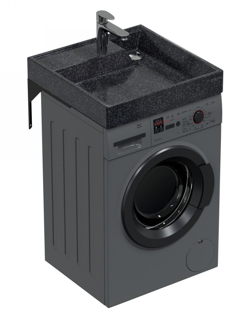 Раковина на стиральную машину СаНта Юпитер 60*60 черного цвета изготовлена из литьевого мрамора.