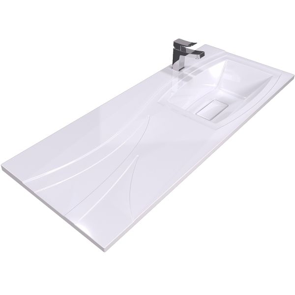 Раковина для ванной комнаты над стиральной машиной Элеонора 120 украшена элегантным декором на крыле. Крыло находится справа. Верхний слой гелькоута образует декоративно защитное покрытие. Кронштейны приобретаются отдельно. В комплектацию входит декоративная крышка на слив.