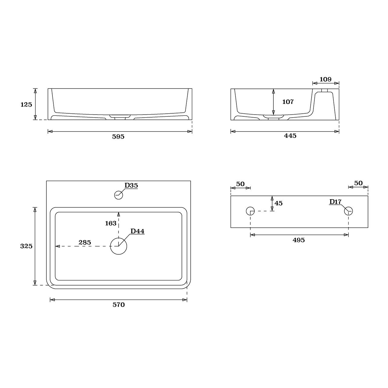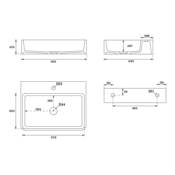 • Отверстия под смеситель: