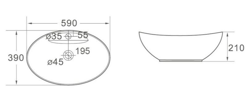 Раковина керамическая 59 х 39 х21 см, накладная с переливом