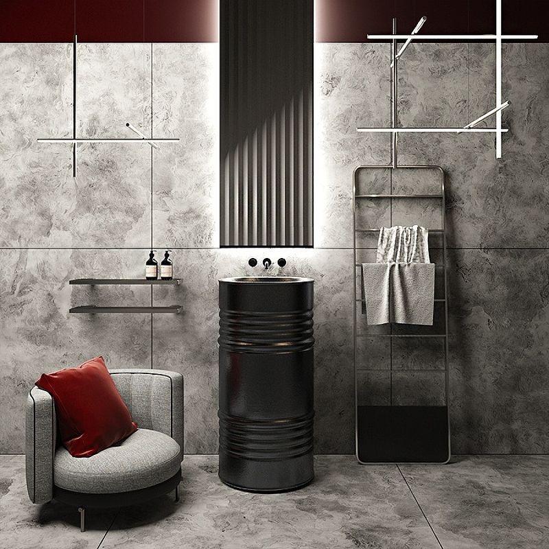 Раковина напольная Kerasan Artwork Barrel 474331 45см слив в стену чёрный матовый купить
