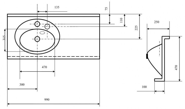Раковина подвесная Акватон Отель левая 100см белый 1A70073NOT01L