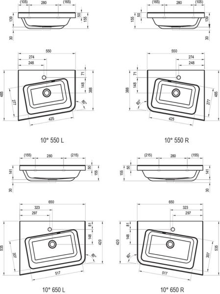 Раковина Ravak 10° 550 L XJIL1155000 левый
