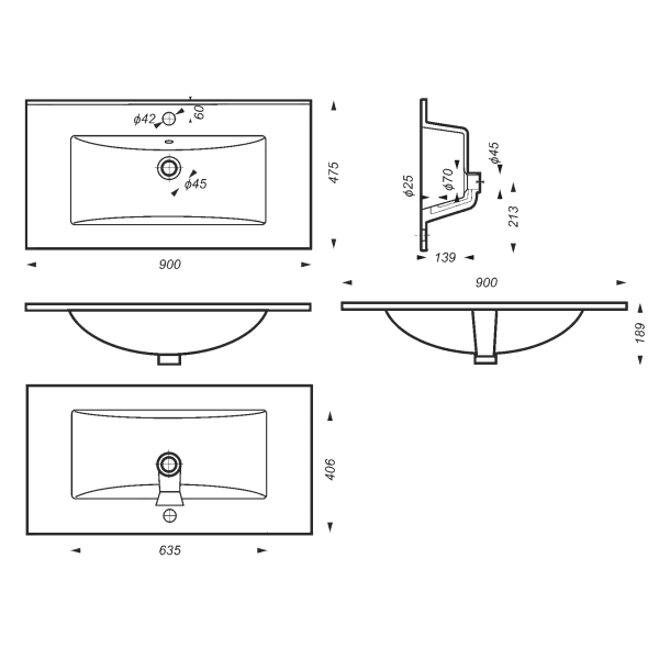 Раковина Sanita Luxe Quadro WB.FN/Quadro/90-C/WHT.G/S1 90 см