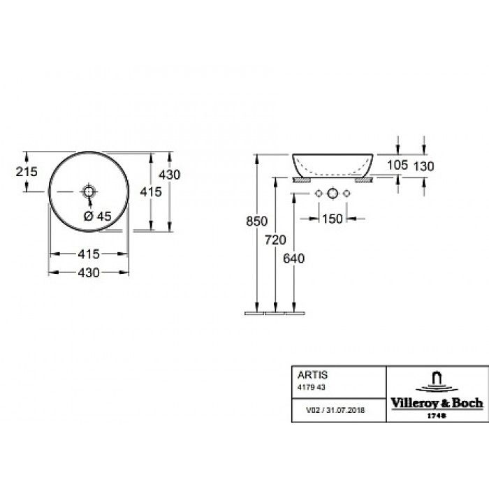 Раковина Villeroy Boch Artis 417943BCW5 43х43 см, Cedar зеленый купить