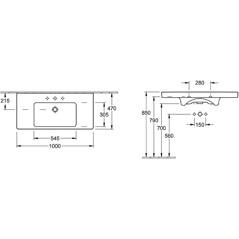 Раковина Villeroy Boch Subway 2.0 7175A0R1 100 см