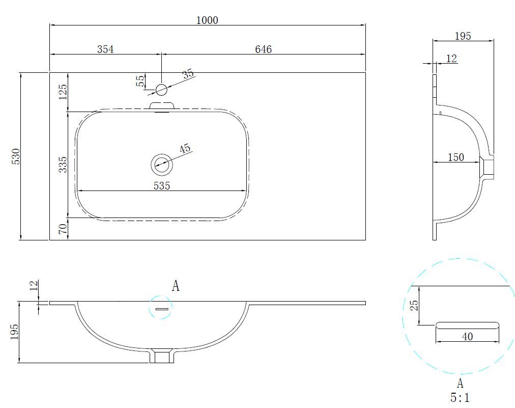 Раковина Vincea Elise VCB-4EL100MW-L, Corian левая, цвет белый матовый