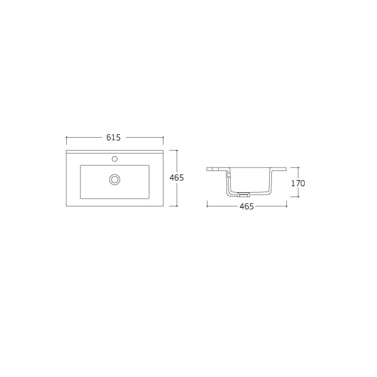 615х465х170Отверстия под смеситель: