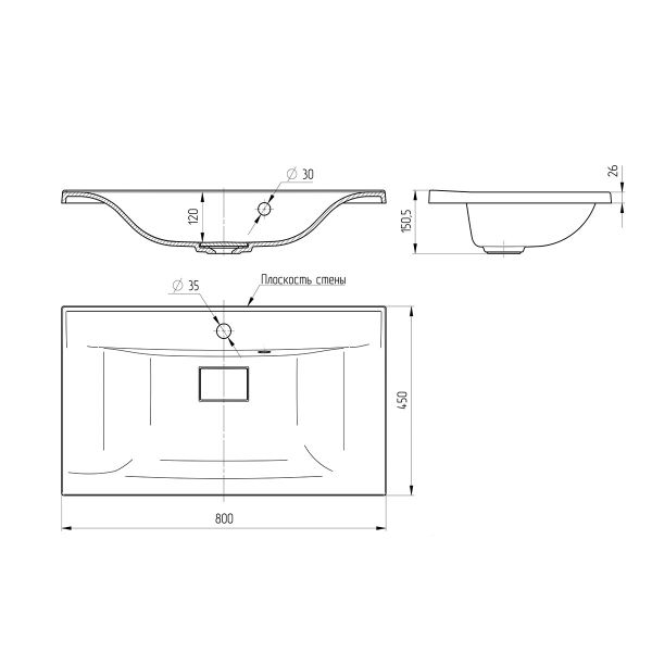 Раковина Vincea VCB-3M800B 80 см черная Подробнее