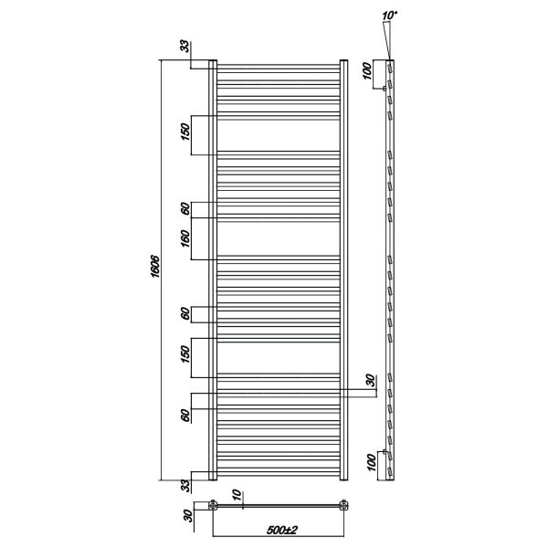 Ravak Полотенцесушитель Водяной Degree 500 x 1600_W