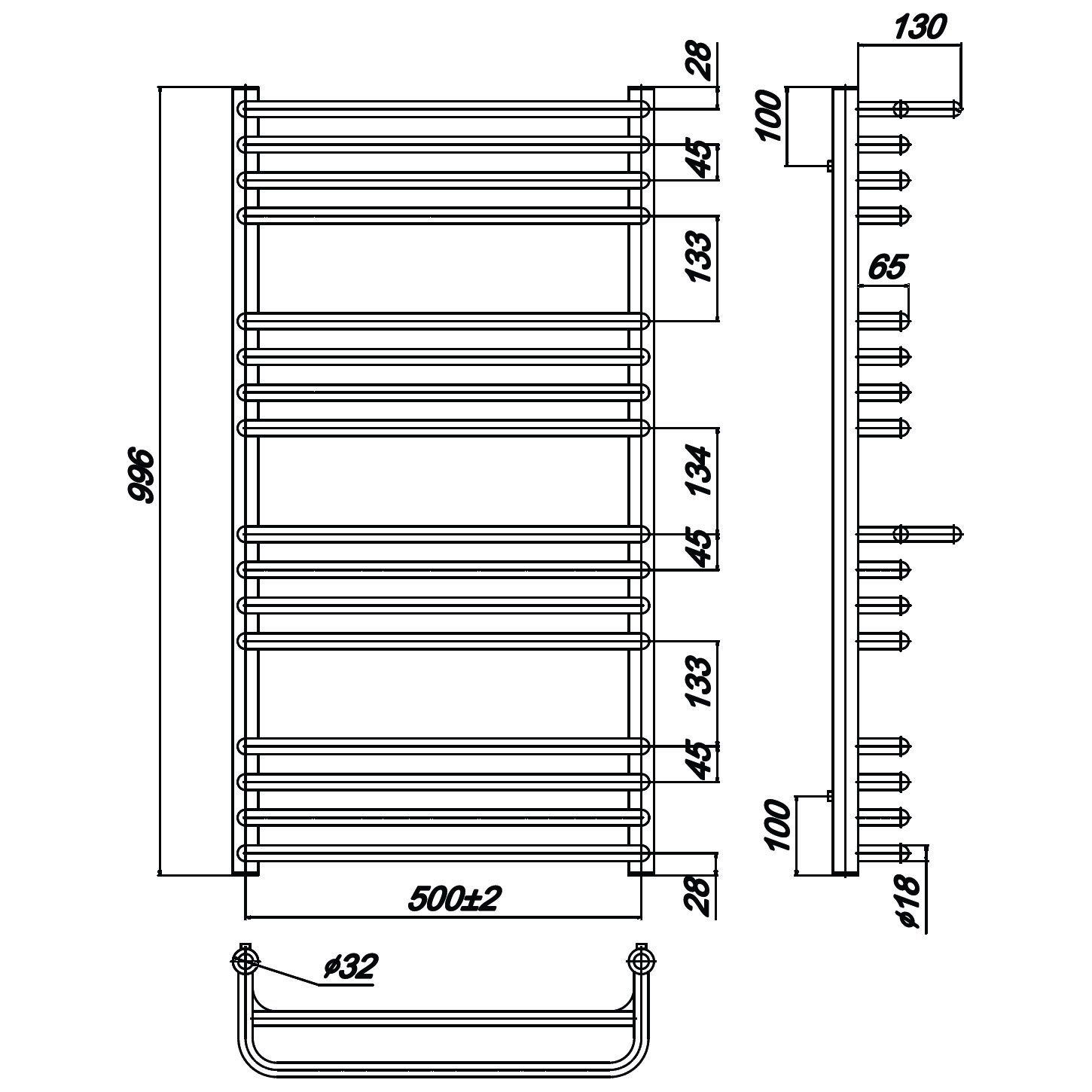 Ravak Полотенцесушитель Водяной Optima 500 x 1000_W