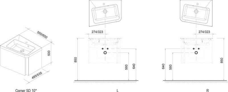 Ravak Тумба под умывальник SD 10° 650 L белая купить
