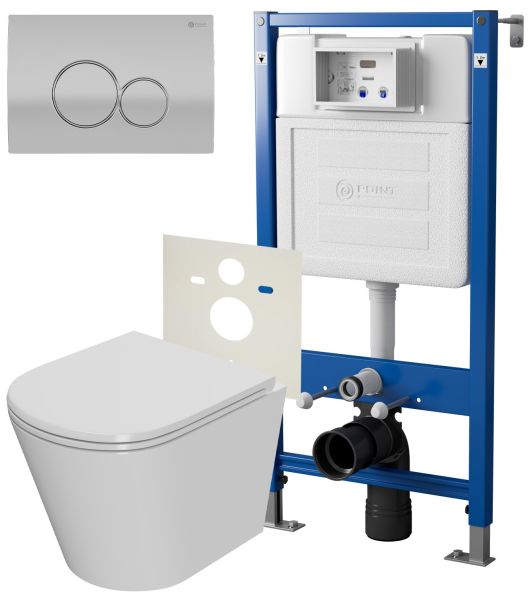 Сет: Система инсталляции Point Элемент для подвесного унитаза PN45120 + Клавиша смыва для инсталляции Point Виктория, цвет сатин/хром, PN44061SC + Унитаз подвесной Point Виктория безободковый, сиденье микролифт PN41061
