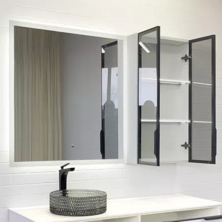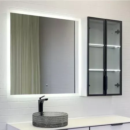 Габариты (ШхВхГ): 500*800*180 ммСтворки оснащены петлями с механизмами плавного закрывания. За створкой две горизонтальные стеклянные полки. Торцы полок со светодиодной подсветкой. Вертикальный профиль с интегрированной ручкой. В комбинации с зеркалом Эдельвейс 90 шкаф можно подвесить в правом или левом варианте.