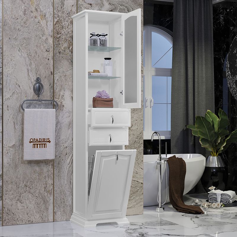Система хранения: две стеклянные полки, два ящика, бельевая корзина.