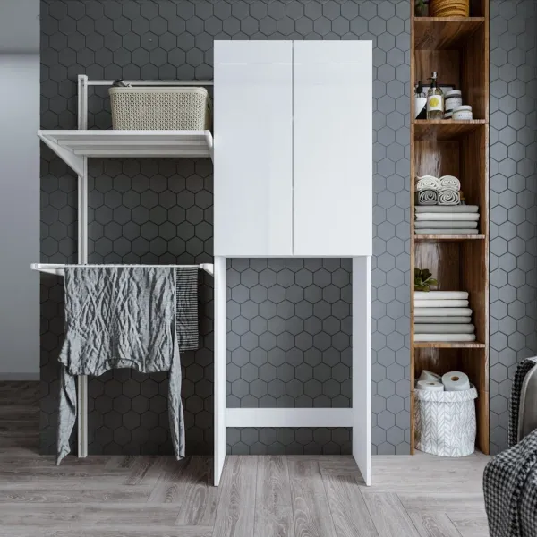 Шкаф над стиральной машиной Бриклаер Хелена 64 см, белый глянцевый, 4627125416385